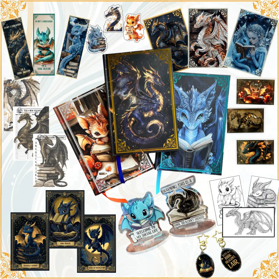 Our world is so full of screens, so these reading journals are an homage to the joy of a real book, of those cozy moments spent curled up with a great story. And if you love books and dragons, you are probably a book dragon, so these journals were designed with you in mind to be your trusted book dragon companion through your literary adventures, and your assistant to tame your ever growing book hoard.
